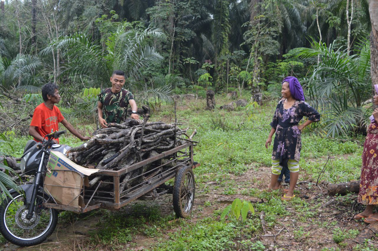 Palas – Tak tega melihat Bonisa seorang nenek yang mencari kayu bakar ke hutan, anggota Satgas TMMD Reguler ke-123 Kodim 0212/Tapsel, Pratu Diki Siregar langsung turun ikut membantu