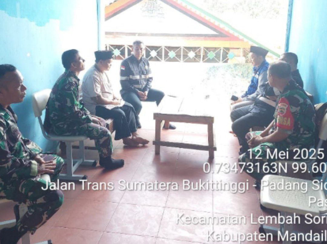 Lembah Sorik Marapi – Pelda T. Sijabat Batuud Koramil 14/Kotanopan Kodim 0212/Tapsel bersama Babinsa mendampingi Tim Survey dari PT. Sorik Marapi Geothermal Power (SMGP) dalam pelaksanaan Kegiatan Pendektesian Sumber Mata Air pembuatan sumur di Pondok Pesantren Roihanul Jannah Kelurahan Pasar Maga Kecamatan Lembah Sorik Marapi Kabupaten Mandailing Natal, Senin (12/05/2025)