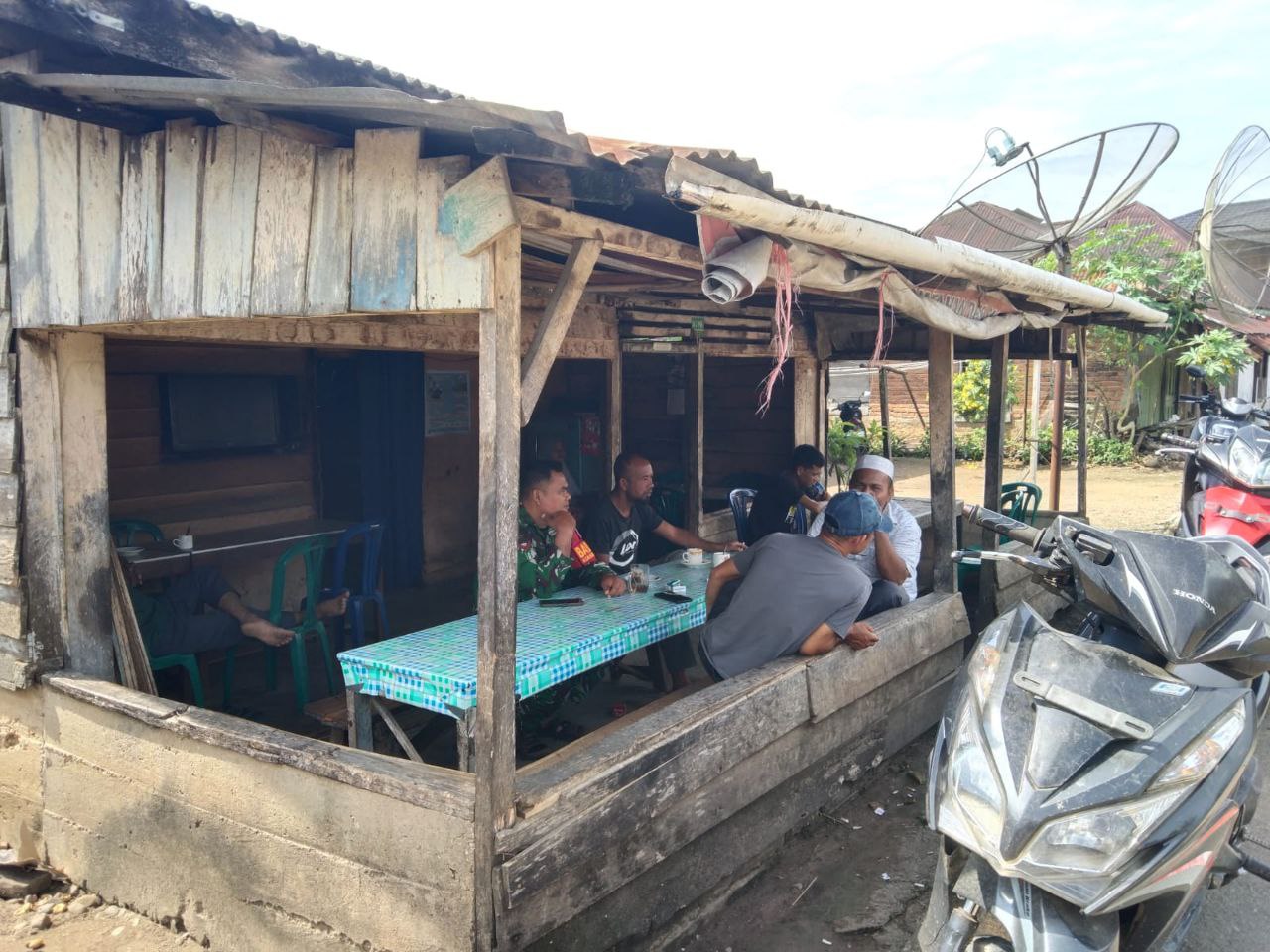 Seperti yang dilakukan oleh Babinsa Koramil 09/Sosa Kodim 0212/Tapsel Kopda Salman Hasibuan dalam menjalin komos dan keakraban serta kebersamaan yang baik dengan warga di salah satu warung kopi di Desa Pagaran Tayas Kecamatan Batang Lubu Sutam Kabupaten Padang Lawas, Sabtu (16/08/2025)