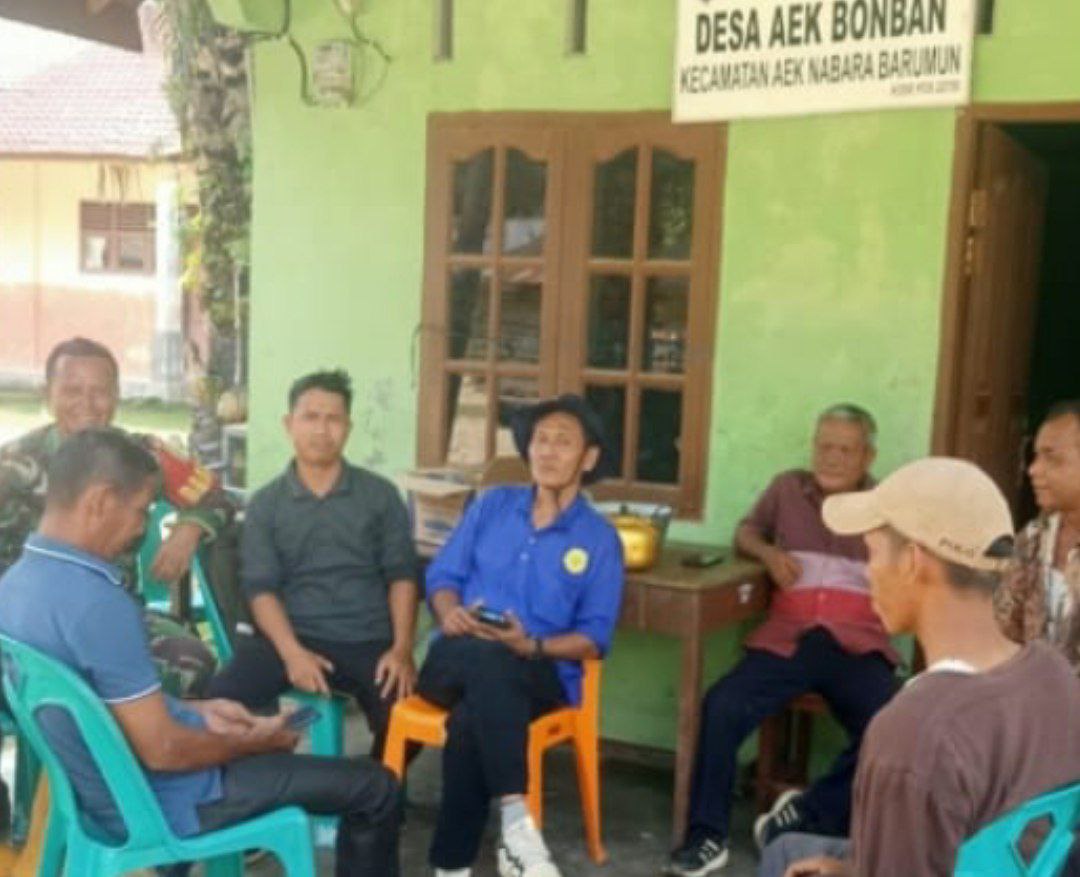 Aek Nabara Barumun – Demi menjaga kondusifitas di wilayah desa binaan, Babinsa Koramil Koramil 10/Barteng Kodim 0212/Tapsel Kopda Yusriadi melaksanakan Komunikasi Sosial (Komsos) berkumpul dengan warga masyarakat bertempat Desa Aek Bonbang Kecamatan Aek Nabara Barumun Kabupaten Padang Lawas, Sabtu (23/08/2025)