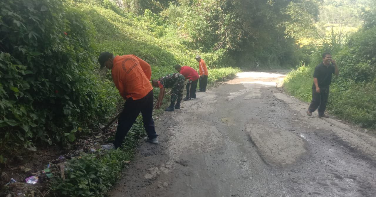 “gotong royong ini dilakukan karena kondisi bahu jalan di Desa ini semakin terlihat menyempit ditumbuhi rumput dan tumbuhan liar yang menjalar ke bahu jalan sehingga sangat kotor,” ujarnya.