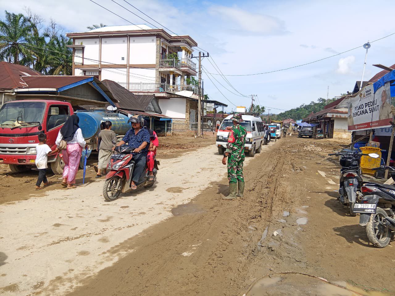 Kegiatan tersebut dilaksanakan oleh Babinsa bersama personel dari tim pemulihan bencana sebagai bentuk kepedulian TNI terhadap pemulihan fasilitas umum pasca bencana banjir bandang